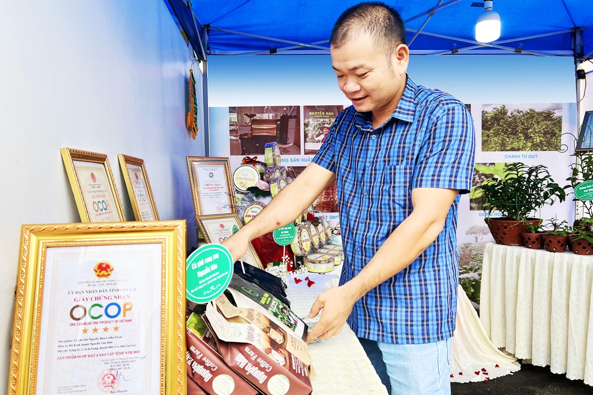 Hội chợ thu hút 60 gian hàng của các doanh nghiệp, hợp tác xã, hộ kinh doanh cá thể trên địa bàn huyện Đức Cơ và một số các huyện, thành phố trong tỉnh. Các gian hàng giới thiệu, quảng bá sản phẩm OCOP, sản phẩm đặc trưng như cơm lam, gà nướng, rau, củ, quả, gia cầm, mật ong... của đồng bào dân tộc thiểu số; sảm phẩm nông-lâm-thủy sản đã qua sơ chế, chế biến như: cà phê, tiêu, trái cây sấy, hạt điều, gạo…
