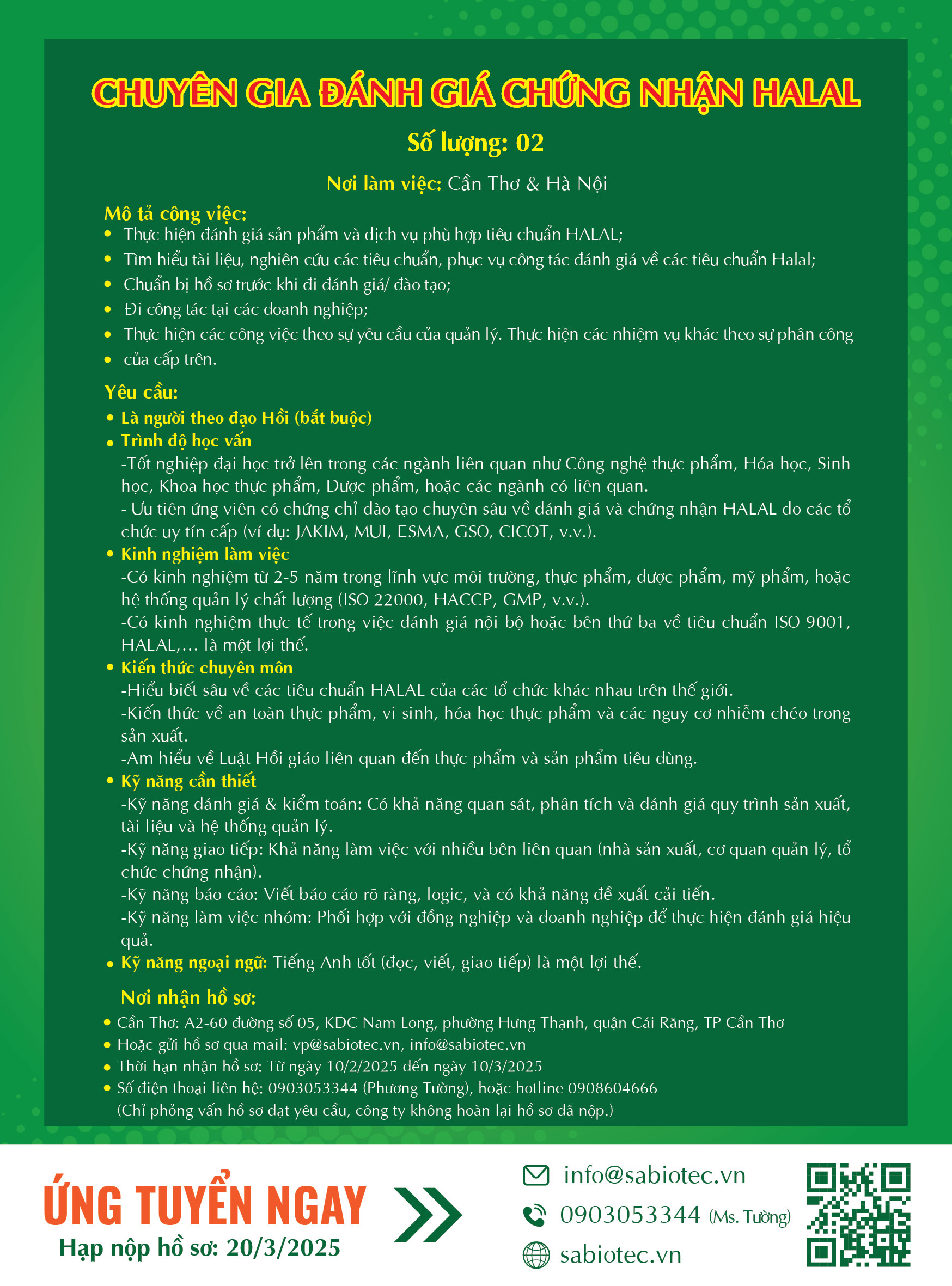CHUYÊN VIÊN ĐÁNH GIÁ CHỨNG NHẬN HALAL